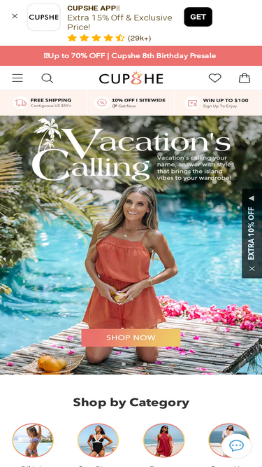 Cupshe | Women's Swimsuits, Dresses and Clothing Online Store Discover stylish and affordable swimsuits, dresses, and clothing for women by Cupshe.Shop one-piece, bikinis, cover ups, dresses, tops, bottoms, plus size and more. ... ️Free Shipping 1st order! No minimum | code: FS29. Your bag is empty. Discover Now. $10 OFF $79+ Sitewide | CODE: FW10. $15 OFF $149+ Sitewide | CODE: FW15. United States - USD $